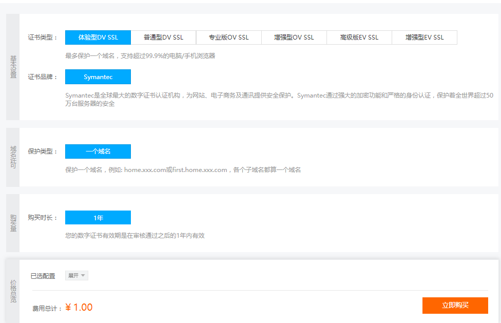 选购指南 > 购买1元证书