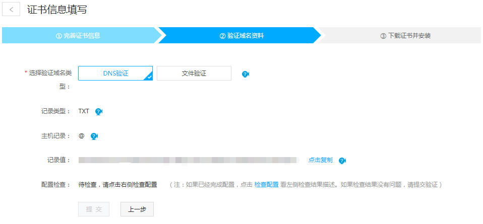 如提示验证失败,请先确定您是否上传文件成功或添加DNS解析成功。