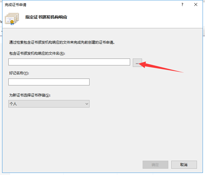 ② 选择由证书机构下发的证书文件,填写好记的名称。