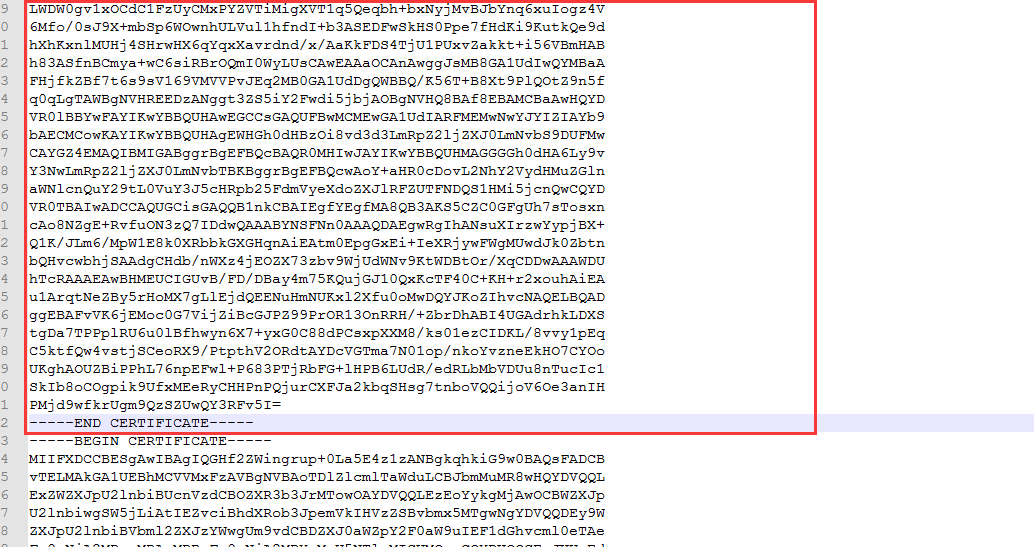 使用notepad++打开 youdomain_ssl.srt 文件,复制下图所示红色以上所有内容