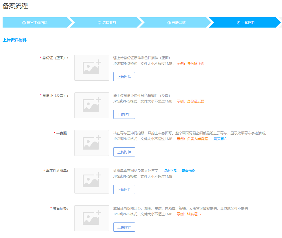 个人备案:附件中必须上传的附件有2个,分别为: