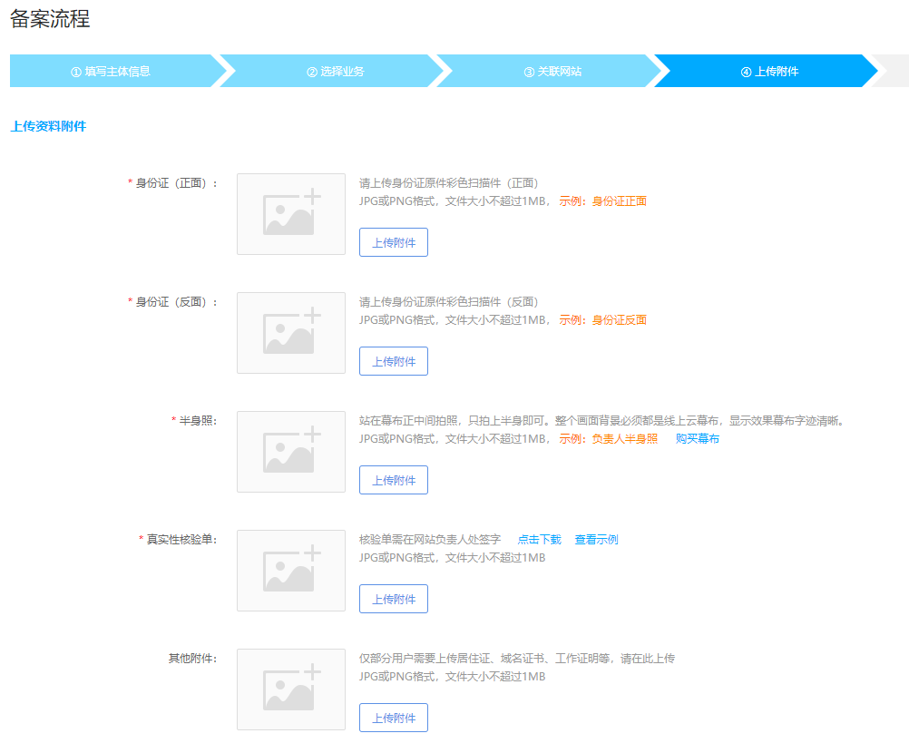 个人备案:附件中必须上传的附件有2个,分别为: